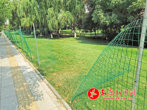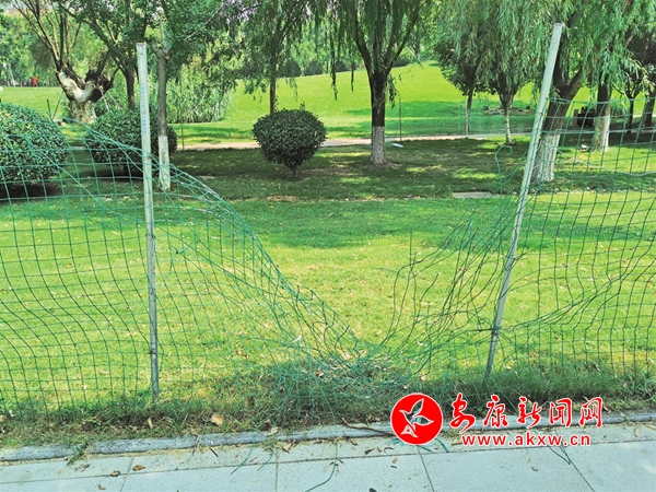 清明節(jié)期間,安康高新區(qū)運動公園內5處圍網(wǎng)被游人破壞。(王琳 攝)