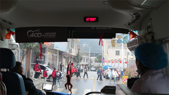 環(huán)顧車內(nèi),面包、牛奶、熱水……這里更像是他們的第二個(gè)家。我和司機(jī)師傅開玩笑說:“今天出發(fā)夠早的啊,太陽都還沒上班呢?!彼緳C(jī)輕描淡寫的說:“這算晚的了,以前去更遠(yuǎn)的鎮(zhèn)上,四五點(diǎn)就要出發(fā)?!彼p眼筆直的看向前方,仿佛看見了比路更多的東西,而在我眼里,那不過是車燈照不到盡頭的一片迷霧。