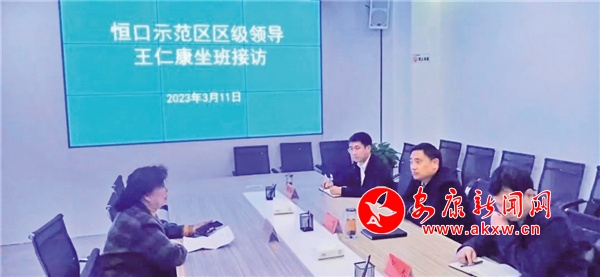 恒口示范區(qū)黨工委副書(shū)記、管委會(huì)主任王仁康接訪群眾。