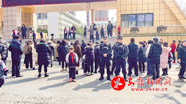 開學(xué)當天,民警在校園門口值守。