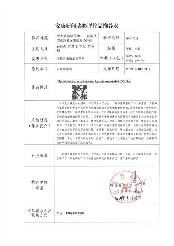 經過編委會推薦、社黨委研究決定,擬推薦以下13件新聞作品參評2023年度“安康新聞獎”。公示時間從2024年3月25日至2024年3月29日,公示期為5個工作日。如有不同意見,請向安康日報社機關紀委、新聞管理部反映。