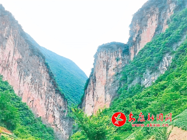 白巖坡就是大巴山的杰作,地質(zhì)斷層形成的兩座山峰如同兩扇大門,擋在通往巴山的路途上,展示著什么是“一夫當(dāng)關(guān),萬夫莫開”。歲月的風(fēng)霜雪雨、日曬夜露將山體侵染成灰白相間的印跡,像極了牛角上的紋路,生命力極強(qiáng)的花草樹木在懸崖峭壁上瘋狂生長,一條不知趣的小溪硬是從兩山夾峙中拼命擠過,切出一道深澗,絮絮叨叨著“水可穿石”。從巖石里、溶洞中、草木根沁出的泉水,爭先恐后地竄進(jìn)小溪,歡歌嬉戲。停車駐足,一股清新空氣不打招呼地沁入心脾,全身舒坦。抬頭仰望,一線天里寫滿花草樹木、藍(lán)天白云、風(fēng)花雪月,讓人心曠神怡,仿佛到了世外桃源。