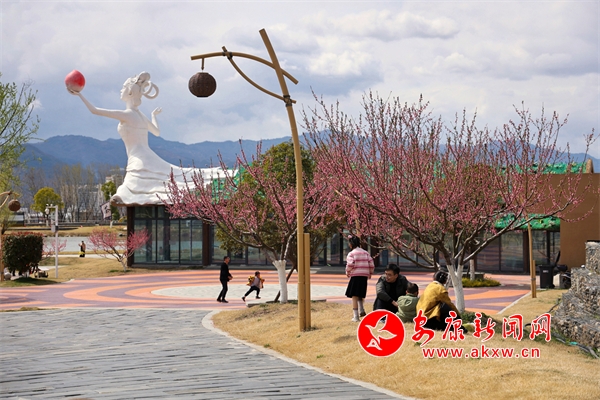 景區(qū)紫葉李、桃花競相綻放,吸引市民前往觀賞。