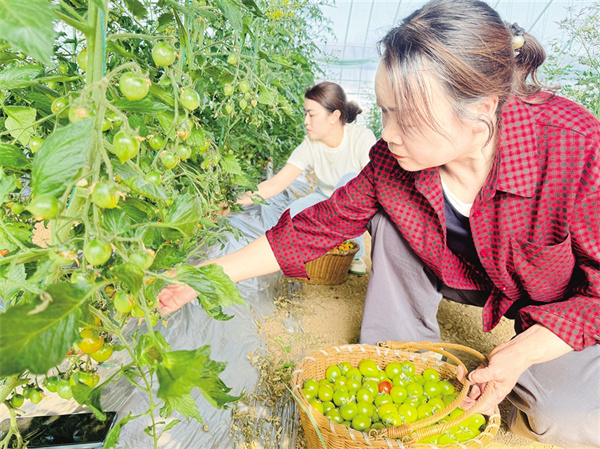 在分揀包裝區(qū),果農(nóng)們將圣女果按顏色、甜度分級包裝?!扒嗌鸲雀撸m合鮮食;紅色果酸甜適中,主要供應(yīng)餐飲店?!贝迕駝⒋蠼憬榻B,自己以前在外地務(wù)工,現(xiàn)在在家門口就能上班,每個月能掙3000多元。在歡樂采摘區(qū),游客們一邊采摘一邊拍照,發(fā)微信朋友圈展示觀光采摘的樂趣。