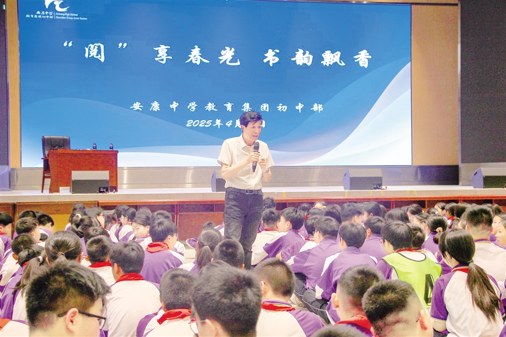 本網(wǎng)訊(記者 郭颯 實(shí)習(xí)記者 趙德莎)4月21日,著名作家李春平應(yīng)邀來(lái)到安康中學(xué)教育集團(tuán)初中部,為師生帶來(lái)一場(chǎng)主題為“閱讀與寫作”的專題講座。