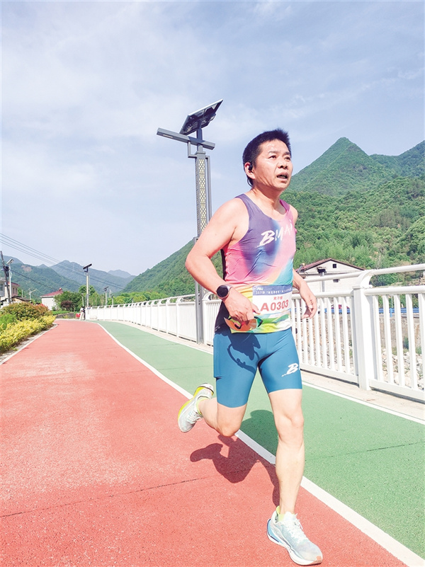 沿途的補(bǔ)給站早已經(jīng)準(zhǔn)備就緒,啦啦隊(duì)舉著“加油”的標(biāo)語牌揮舞,沿途的村民不分男女老少紛紛為選手鼓勁。比賽中,臨近退休卻堅(jiān)持跑步10余年的“老將”肖軍鼓勵大家:“一定要穩(wěn)住節(jié)奏,后半程才不會掉速!”大顆大顆的汗水在他臉頰流淌,卻掩不住他眼中躍動的光芒。