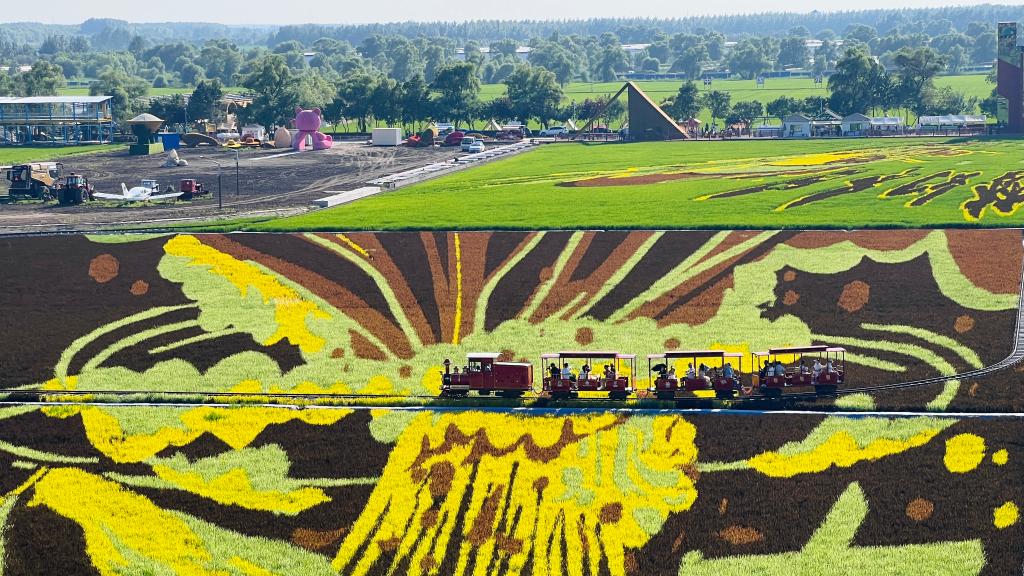 在北大荒集團(tuán)閆家崗農(nóng)場(chǎng)的“藝術(shù)稻田”里,6幅稻田畫在165畝稻田中徐徐展開——冰雪畫卷盡顯百年冰城魅力,四季生態(tài)畫卷演繹著四季浪漫;萌寵卡皮巴拉,傳遞出平靜與治愈的力量;后羿射日、女媧補(bǔ)天、神筆馬良這些經(jīng)典神話在稻田中煥發(fā)新生,與多彩的稻浪共同演繹著中華文明的永恒魅力。100多公里外,北大荒集團(tuán)四方山農(nóng)場(chǎng)的玉米田,青紗帳漸染金黃,工作人員張昊正遙控?zé)o人機(jī),巡航監(jiān)測(cè)作物成熟度,科技與傳統(tǒng)在此刻共舞。