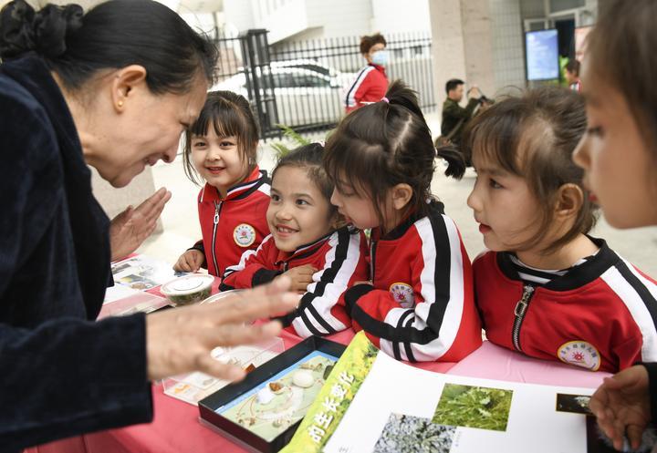 2024年4月16日,在新疆烏魯木齊市天山區(qū)南灣街街道,昌樂園幼兒園的小朋友在老師的講解下了解春蠶的生長過程。谷雨節(jié)氣將至,烏魯木齊市一些社區(qū)紛紛開展形式多樣的主題活動,讓市民了解有關(guān)谷雨節(jié)氣的知識,體驗傳統(tǒng)文化的魅力。