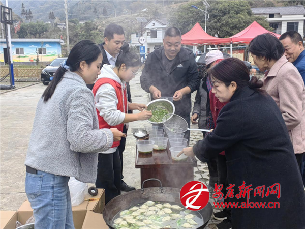 在廣場邊的臨時爐灶上,村“四支隊伍”人員分工協(xié)作,一起為老人們包著餃子。當(dāng)熱氣騰騰的餃子端上桌,老人們的臉上洋溢著幸福笑容。餐后的政策宣講環(huán)節(jié)干貨滿滿,村工作人員用通俗語言講解城鄉(xiāng)合作醫(yī)療收繳標(biāo)準(zhǔn)與報銷流程,結(jié)合老年群體常見病種舉例說明,現(xiàn)場為3位老人完成繳費登記。