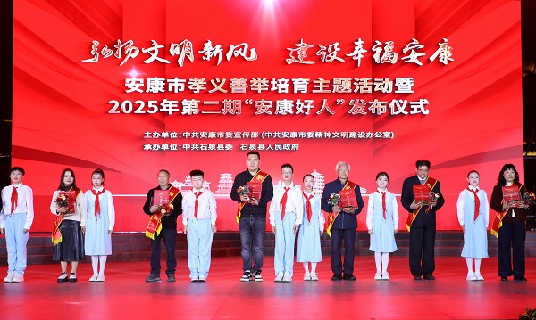 本次活動(dòng)以“弘揚(yáng)文明新風(fēng) 建設(shè)幸福安康”為主題,由市委宣傳部主辦、石泉縣委和縣政府承辦,旨在深入學(xué)習(xí)貫徹黨的二十屆四中全會(huì)精神,扎實(shí)推進(jìn)崇德向上幸福安康建設(shè)?;顒?dòng)現(xiàn)場(chǎng),通過播放典型人物短片、現(xiàn)場(chǎng)互動(dòng)訪談等形式,生動(dòng)再現(xiàn)了陳登發(fā)、高虎、黃壽琴等好人代表的感人事跡。市級(jí)領(lǐng)導(dǎo)及“中國好人”“陜西好人”等先進(jìn)典型代表為28名新入選的“安康好人”頒發(fā)紀(jì)念證書?;顒?dòng)現(xiàn)場(chǎng)同時(shí)發(fā)布了2025年安康市“新時(shí)代好少年”名單,24名青少年獲得殊榮。