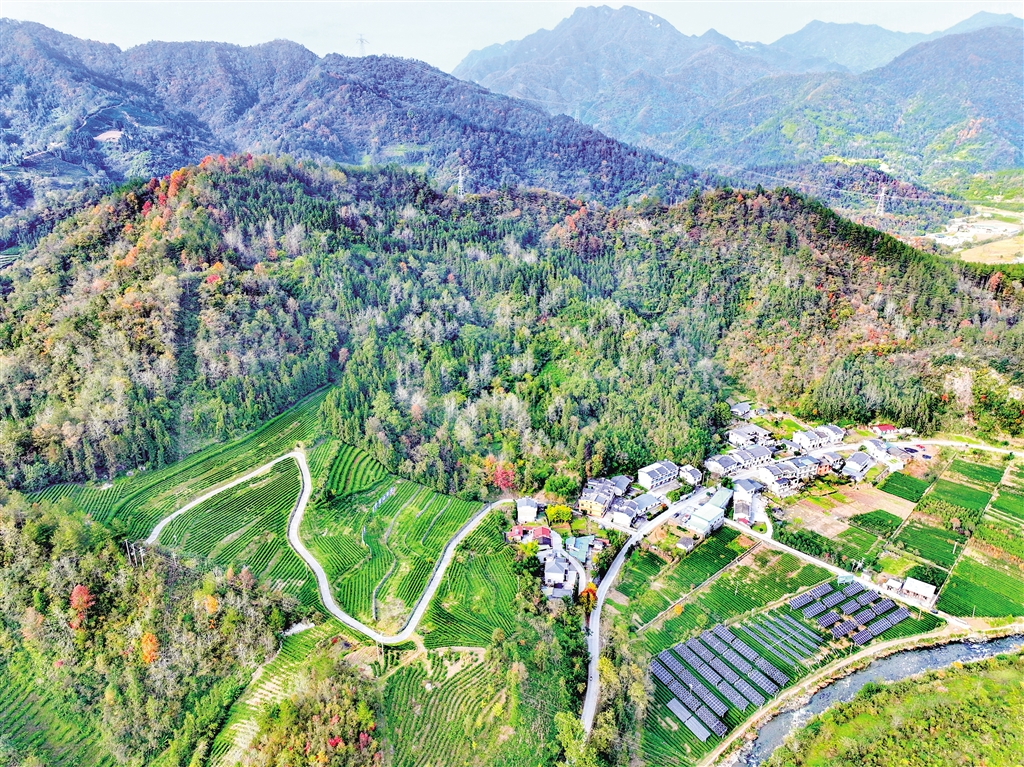 近年來(lái),平利縣廣佛鎮(zhèn)通過(guò)山上建茶園、山下安裝光伏板,讓群眾共享綠色收益。吳永杰 攝