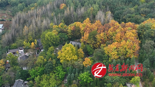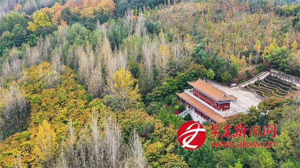 初冬時節(jié),漢陰的龍崗公園內外層林盡染,與人文景觀交相輝映,構成一幅流動的山水畫卷。公園地勢連綿,園內步道蜿蜒,亭臺錯落。從空中望去,茂密的林木披上了紅、黃、橙交織的花衣裳,與常綠樹種相互點綴,猶如大地的調色盤。山頂?shù)凝垗忛w巍然屹立,在金黃烏柏與如火楓葉的簇擁中,成為整個公園的視覺焦點。登閣遠望,漢陰縣城全貌盡收眼底,月河如帶穿城而過,與秋日晴空共同勾勒出“水天一色”的壯美圖景。(通訊員 文婷 徐歡)