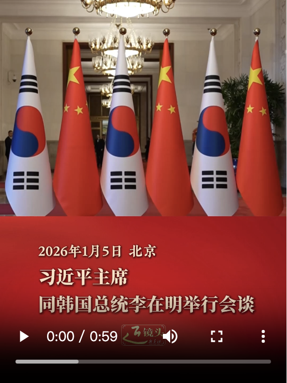 1月5日下午,國家主席習(xí)近平在北京人民大會堂同來華進行國事訪問的韓國總統(tǒng)李在明舉行會談。去年11月1日,習(xí)近平主席同李在明總統(tǒng)在韓國慶州舉行會談。時隔短短兩個多月,中韓兩國元首實現(xiàn)互訪。