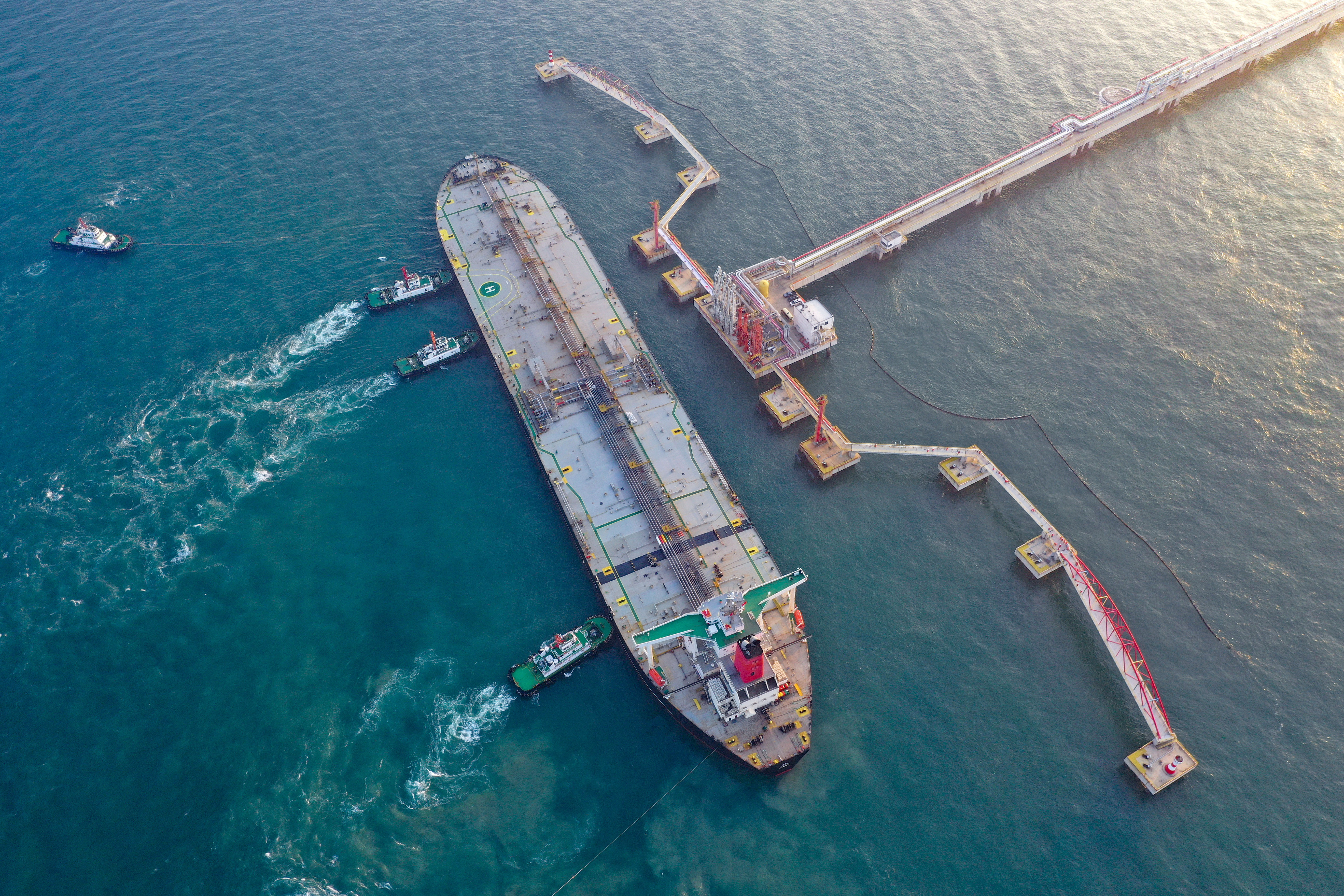 △ 2025年12月18日,一艘裝載著17.9萬噸石化原輔料的船舶泊入位于海南省儋州市的國投洋浦油儲碼頭30萬噸級原油泊位(無人機照片)。