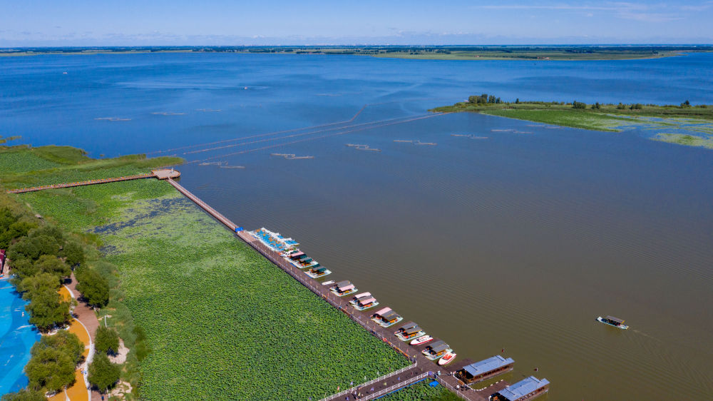 ??2020年7月20日拍攝的查干湖濕地。查干湖通過(guò)一系列工程性、生物性和管理性措施,不斷擴(kuò)大濕地面積,維護(hù)濕地生態(tài)平衡。截至2025年2月,查干湖實(shí)施濕地保護(hù)與恢復(fù)等項(xiàng)目24個(gè),通過(guò)河道治理、引水灌溉、生態(tài)修復(fù)等工程,調(diào)配利用洪水資源和灌溉回歸水,實(shí)現(xiàn)“松花江—查干湖—嫩江”水體連通和動(dòng)態(tài)循環(huán)。
