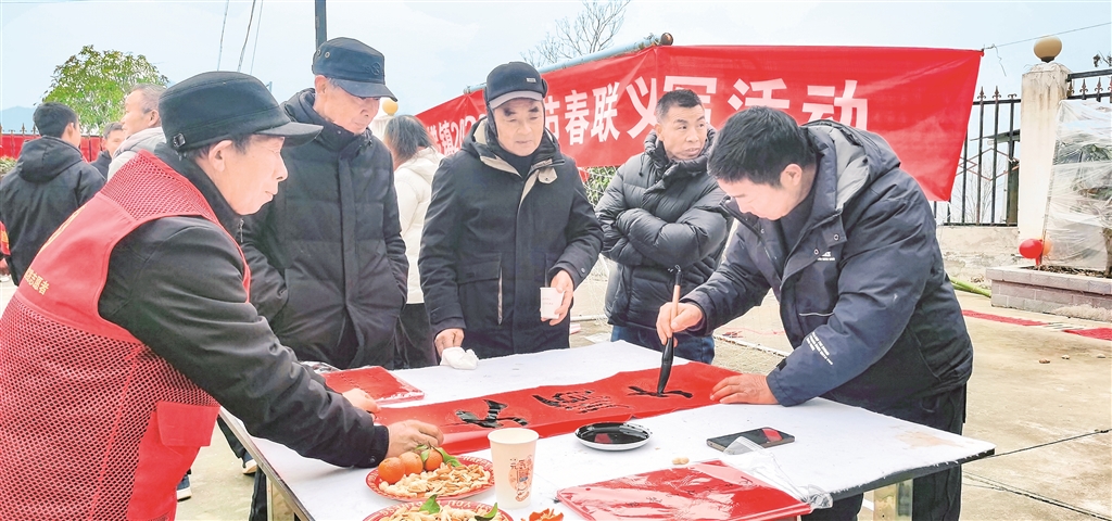 “‘村晚’既注重豐富群眾的文化生活,也著力帶動(dòng)村民增收?!睏羁艽灏?lián)干部、石梯鎮(zhèn)農(nóng)村農(nóng)業(yè)中心主任王化澎介紹了活動(dòng)的初衷。現(xiàn)場(chǎng)設(shè)置的送春聯(lián)區(qū),書法愛好者揮毫潑墨,一副副對(duì)聯(lián)、一個(gè)個(gè)“?!弊直淮迕裥老步舆^;就業(yè)推薦區(qū)前,大家認(rèn)真查看《漢濱區(qū)2026年用工單位招聘崗位需求表》,挑選心儀崗位;農(nóng)副產(chǎn)品展銷區(qū),農(nóng)家自產(chǎn)的紅薯、蔬菜,自制的豆腐乳、醪糟、變蛋等,吸引了眾多來自安康中心城區(qū)的市民爭(zhēng)相搶購。