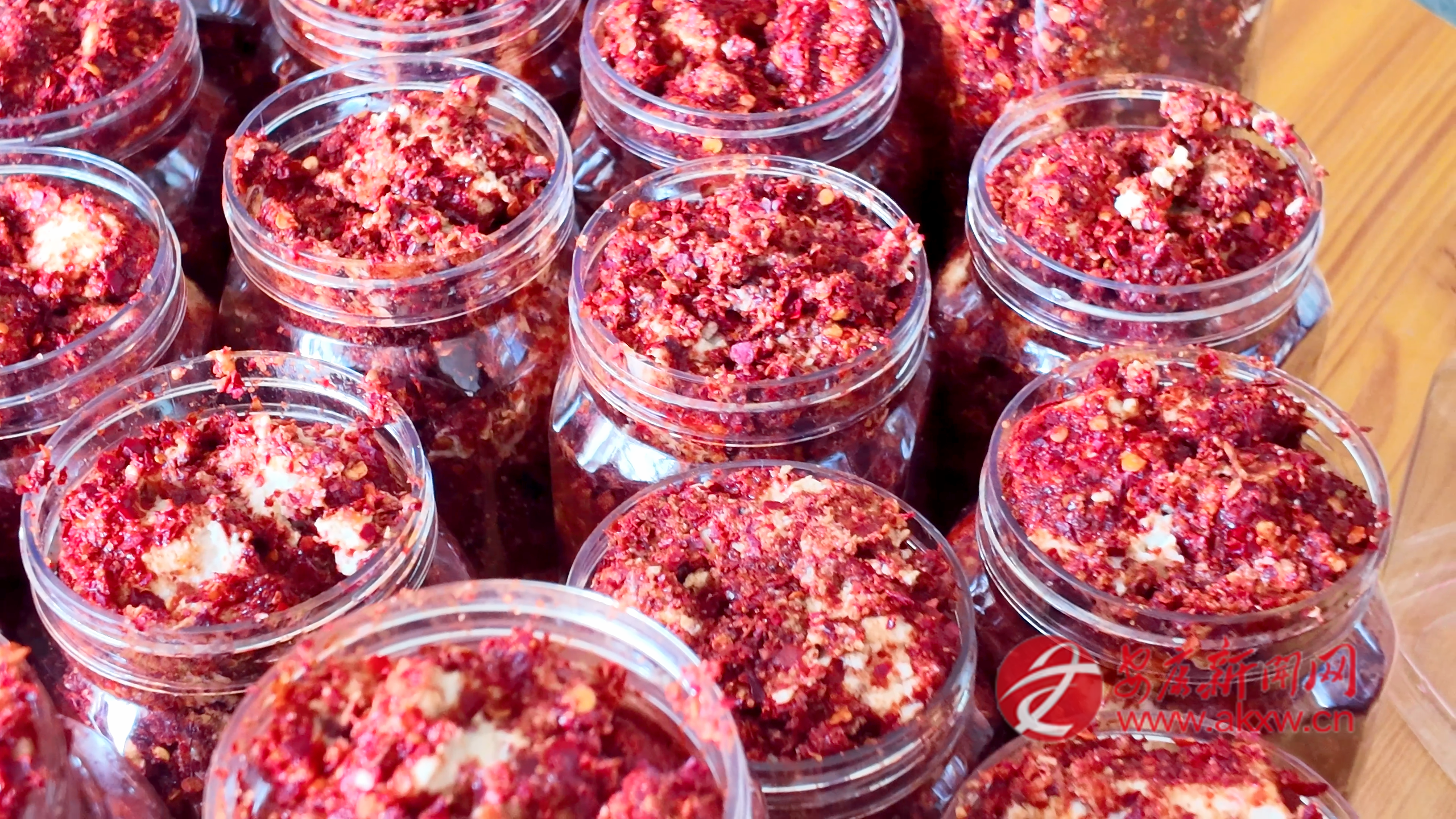 發(fā)酵完成后,便進(jìn)入“拌料”環(huán)節(jié)。自制的辣椒面、精選花椒與精鹽,在一雙巧手的翻拌下,均勻裹上每一塊披著紅絨的豆腐。隨后,它們被穩(wěn)妥地裝入器皿中,封存起來,交由時(shí)間完成最后的轉(zhuǎn)化與融合。