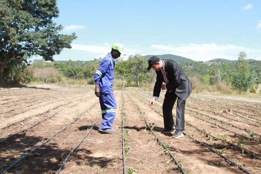 2025年5月14日,在位于津巴布韋中馬紹納蘭省的中國(guó)—津巴布韋農(nóng)業(yè)合作示范村,中方農(nóng)業(yè)專家指導(dǎo)當(dāng)?shù)卮迕瘛P氯A社發(fā)(塔法拉 攝)