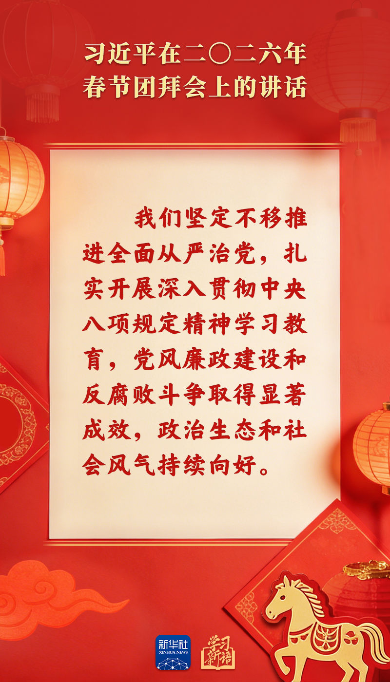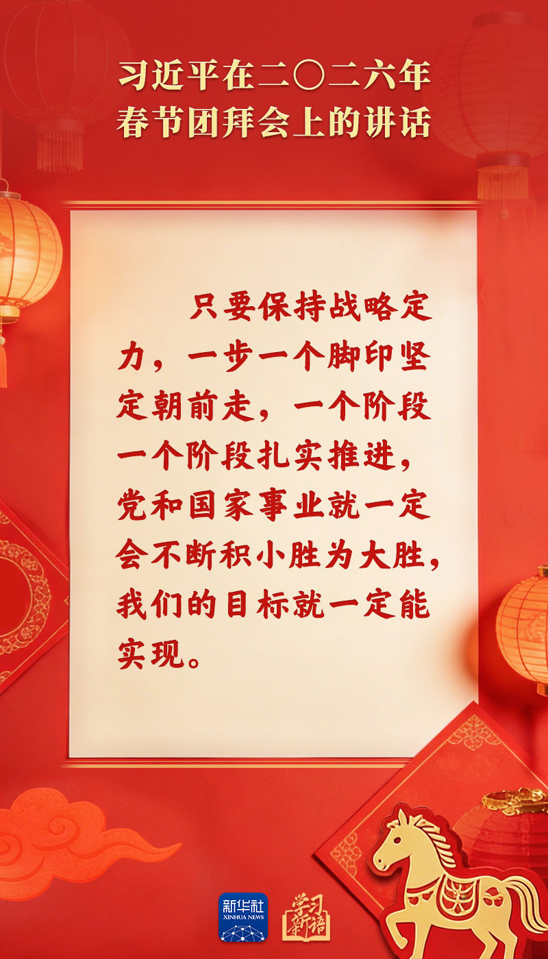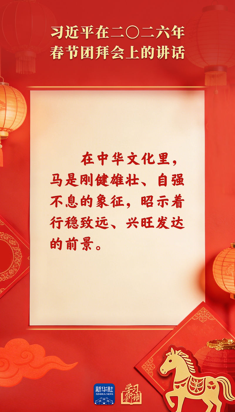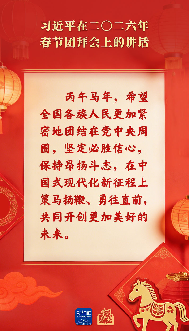 原標題:學(xué)習(xí)新語|策馬揚鞭、勇往直前!2026年春節(jié)團拜會總書記講話金句