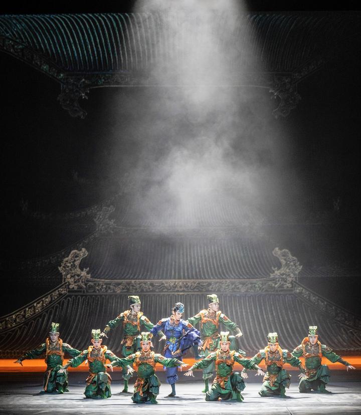 這是舞蹈詩劇《只此青綠》的演出劇照(2024年7月18日攝)?!吨淮饲嗑G》采用平行空間的敘事方式,從故宮博物院青年研究員的“展卷人”視角出發(fā),講述北宋著名畫家王希孟創(chuàng)作《千里江山圖》的故事。該劇連續(xù)3年穩(wěn)居中國舞劇票房榜首,全國巡演超800場(chǎng),赴多個(gè)國家和地區(qū)演出50余場(chǎng),成為傳統(tǒng)文化創(chuàng)新表達(dá)、中國藝術(shù)國際表達(dá)的典范之作。