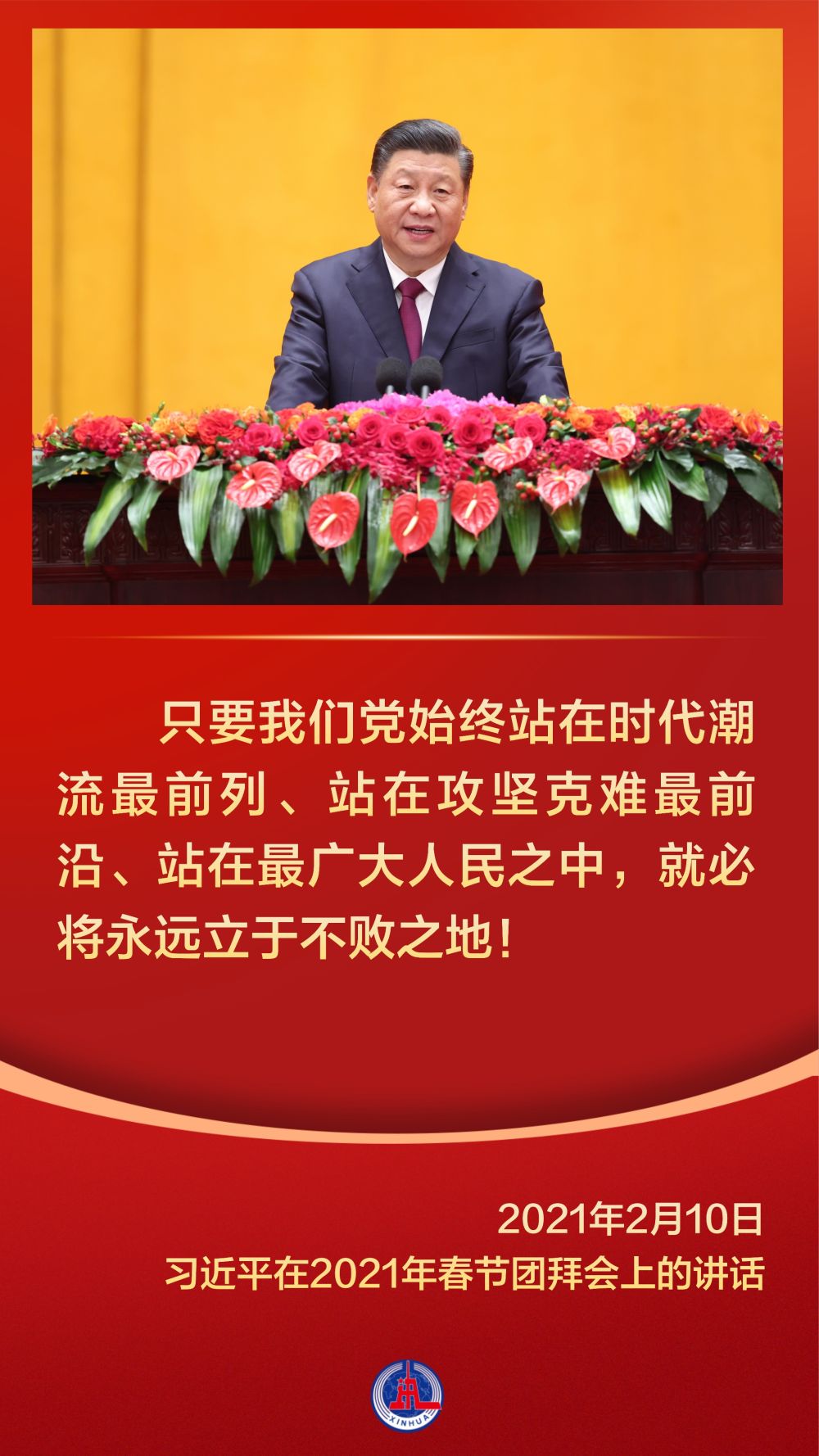黨的十八大以來(lái),習(xí)近平總書記多次在春節(jié)團(tuán)拜會(huì)上發(fā)表重要講話,代表黨中央、國(guó)務(wù)院向全國(guó)各族人民、向港澳臺(tái)同胞和海外僑胞拜年,與大家歡聚一堂,敘友情、話國(guó)事,辭舊歲、迎新春。