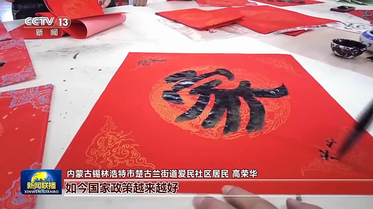 春節(jié)臨近,位于遼寧沈陽的長安小區(qū)十分熱鬧。社區(qū)的舞蹈隊正忙著排練節(jié)目,為新春表演做準(zhǔn)備。書法愛好者現(xiàn)場揮毫潑墨,將祝福寫進一副副春聯(lián)中。