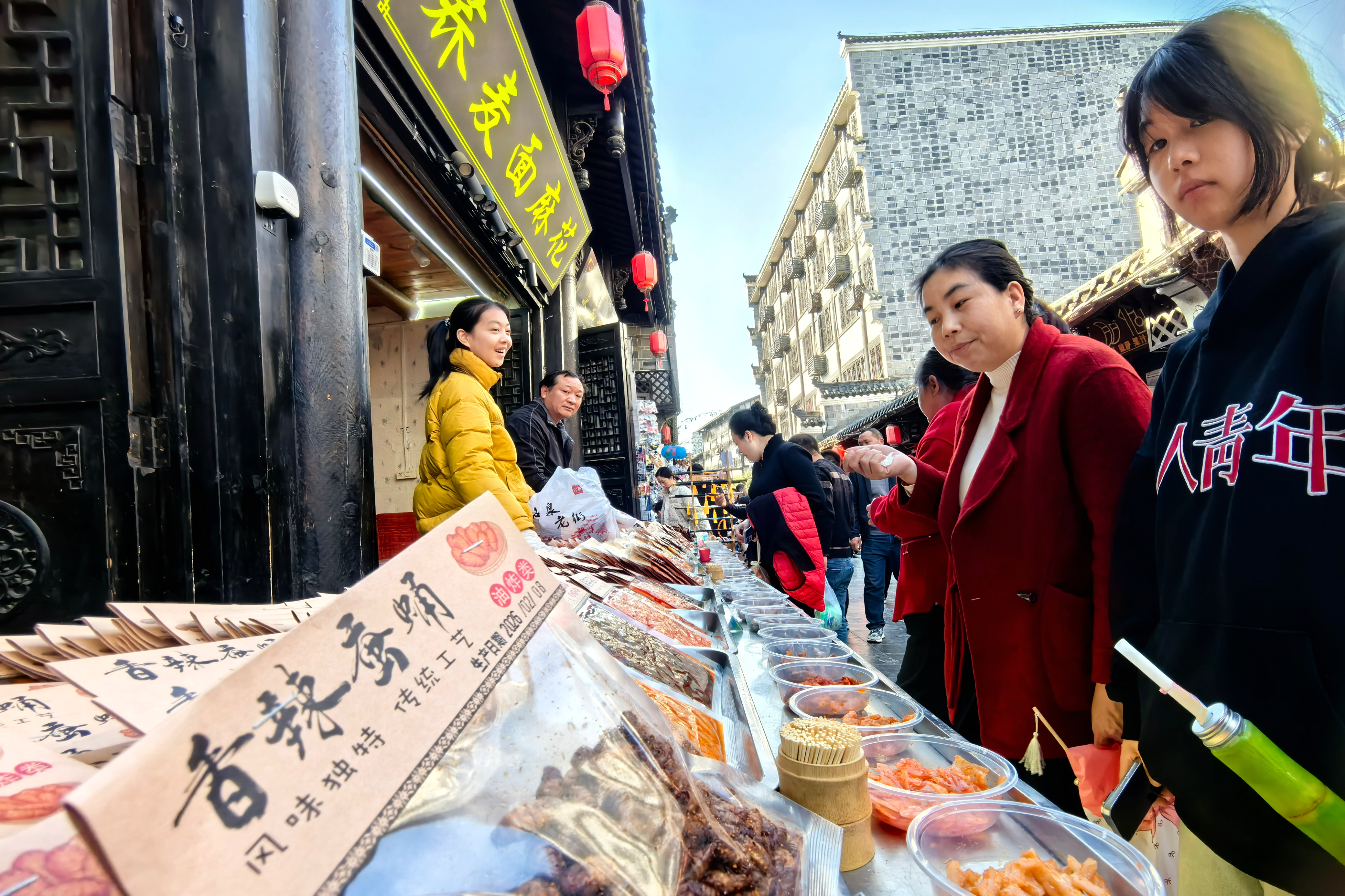 特色小吃吸引游客駐足品嘗、購買。 孟少猛 攝