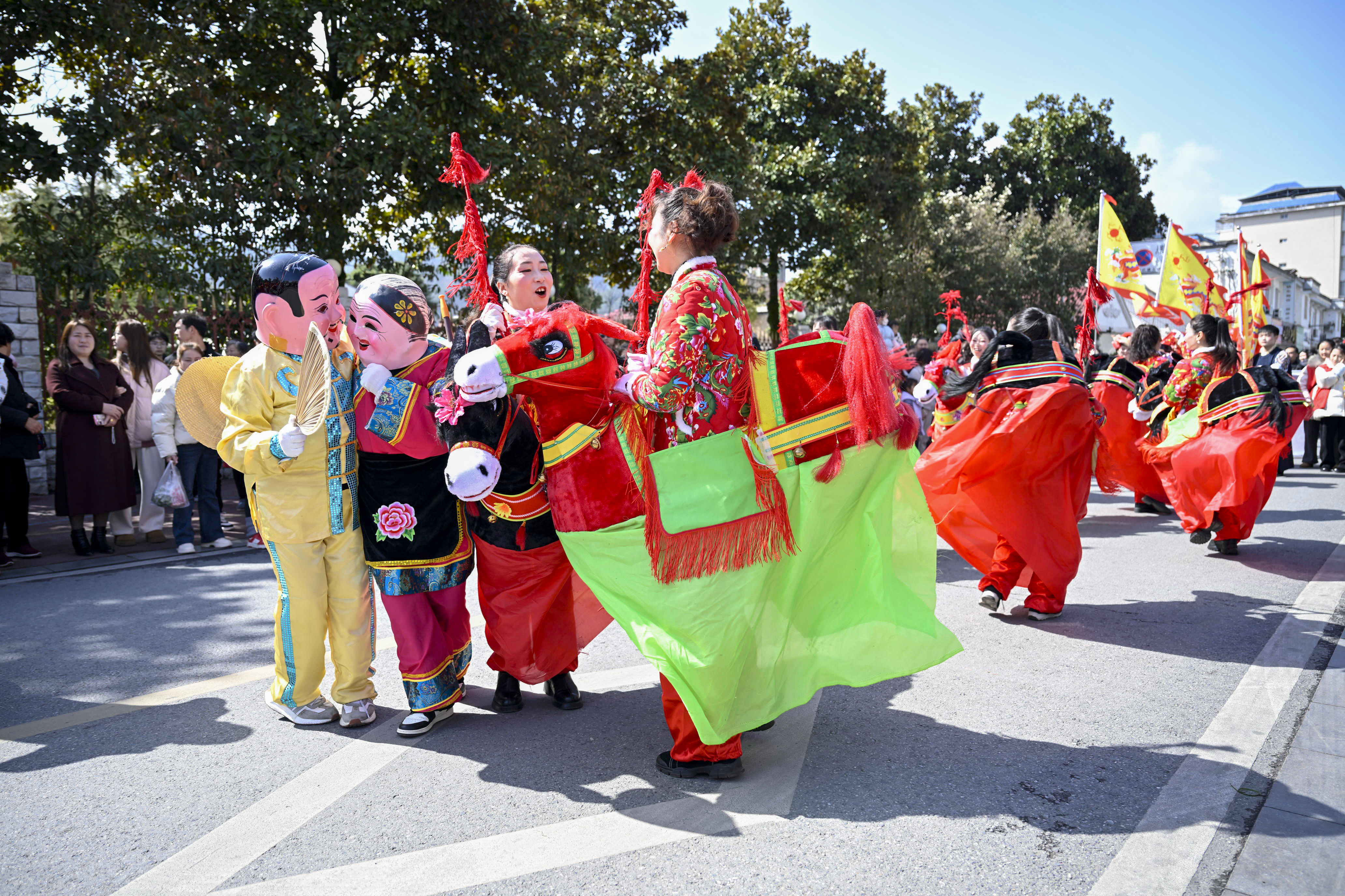 2月24日,石泉縣舉辦了“龍馬精神·十美畫卷”春節(jié)民間文化藝術(shù)展演巡游。來自民間的22支隊伍盛裝上陣,為市民和游客帶來了舞獅、舞龍、采蓮船、秧歌等特色民俗表演,營造出濃厚的節(jié)日氛圍。董長松 攝