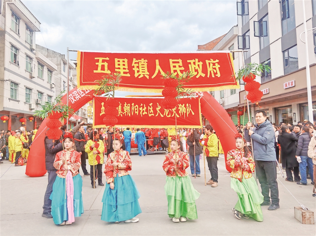 展演結(jié)束后,火龍、火獅和采蓮船等展演隊(duì)伍也被五里工業(yè)集中區(qū)企業(yè)邀請(qǐng)進(jìn)行表演。在鏗鏘鑼鼓聲中,歡騰民俗在現(xiàn)代化廠區(qū)生動(dòng)呈現(xiàn),職工們駐足觀看、掌聲不斷,處處洋溢著喜慶祥和、昂揚(yáng)向上的濃厚氛圍。