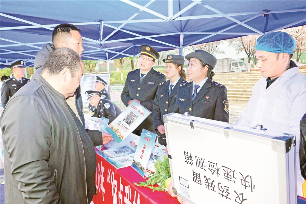 3月14日,在2026年陜西省“3·15”國際消費(fèi)者權(quán)益日主題活動(dòng)暨安康市“3·15”集中宣傳活動(dòng)中,市場監(jiān)管執(zhí)法人員正在宣傳講解農(nóng)殘監(jiān)測。