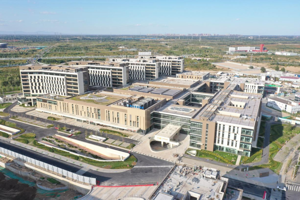 2023年6月30日,中共中央政治局召開會議,審議《關(guān)于支持高標(biāo)準(zhǔn)高質(zhì)量建設(shè)雄安新區(qū)若干政策措施的意見》。此后,一攬子特殊支持政策陸續(xù)落地雄安新區(qū)。2023年10月16日,雄安宣武醫(yī)院開診。首都醫(yī)科大學(xué)宣武醫(yī)院派來管理團(tuán)隊(duì)及骨干醫(yī)生,重點(diǎn)服務(wù)疏解人員和新區(qū)群眾,并輻射京津冀地區(qū)。這是2023年9月30日拍攝的雄安宣武醫(yī)院(無人機(jī)照片)。