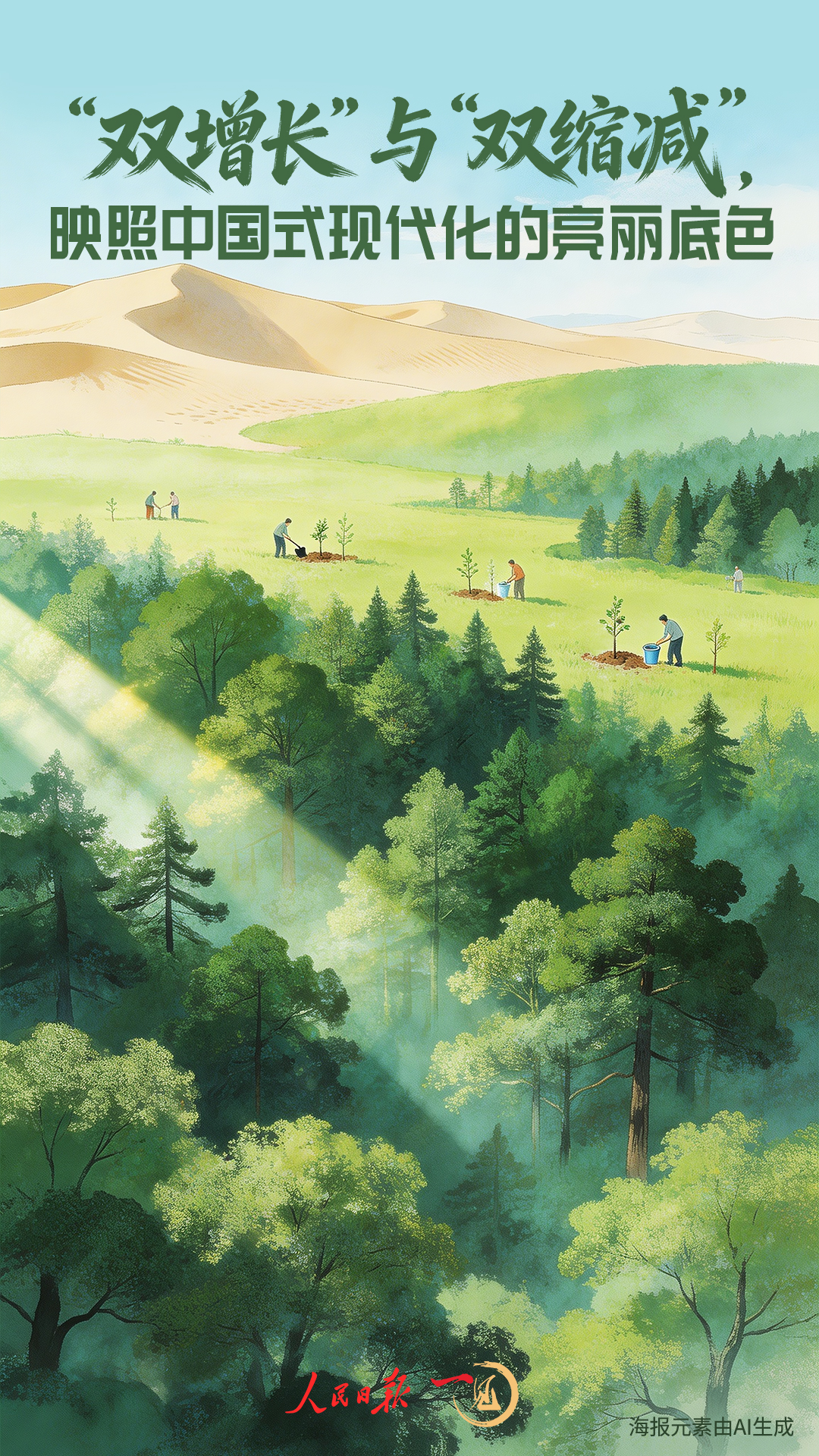 大地植綠,心中播綠?!熬G水青山就是金山銀山”不僅寫在神州大地,更成為全社會的共識和行動,綠色低碳成為新風尚。