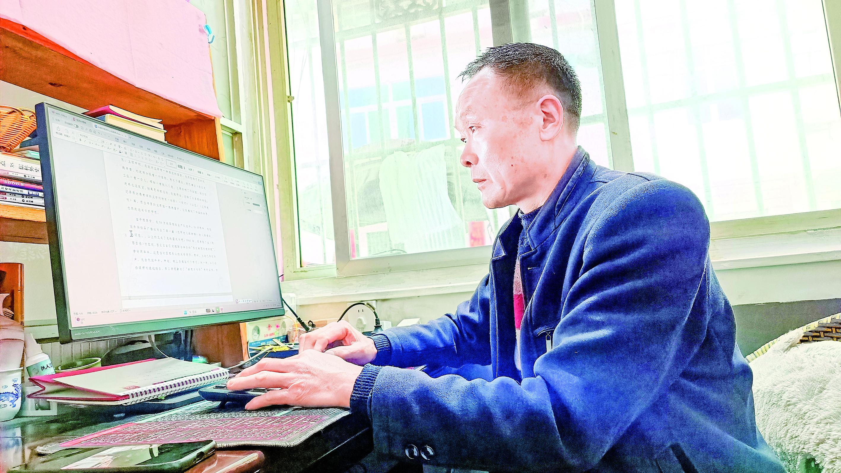 用他自己的話說(shuō),當(dāng)時(shí)寫(xiě)的那些文字還顯得很“粗糙”,可他一守就是數(shù)十年。多年來(lái),他踏遍倉(cāng)上鎮(zhèn)的溝溝岔岔,用心丈量家鄉(xiāng)的每一寸土地,用筆記錄鄉(xiāng)村的點(diǎn)滴變遷,在各級(jí)刊物、網(wǎng)站發(fā)表新聞稿件370余篇,五次獲評(píng)《安康日?qǐng)?bào)》優(yōu)秀通訊員;散文、游記、詩(shī)詞等各類(lèi)作品累計(jì)900余篇,共計(jì)130多萬(wàn)字。這些文字,從來(lái)不是閉門(mén)造車(chē)的空想,而是在田埂上、莊稼地里,在喂豬、放牛、砍柴的間隙,一點(diǎn)點(diǎn)積累、一點(diǎn)點(diǎn)書(shū)寫(xiě)而成,每一個(gè)字都沾著泥土的芬芳,藏著鄉(xiāng)村的煙火氣。