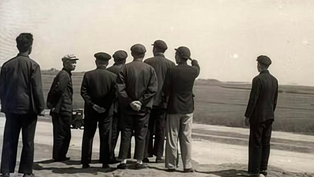 1955年,校長彭康與教授們在西安麥田中踏勘新校址(圖片來源:西安交通大學(xué)新聞網(wǎng))