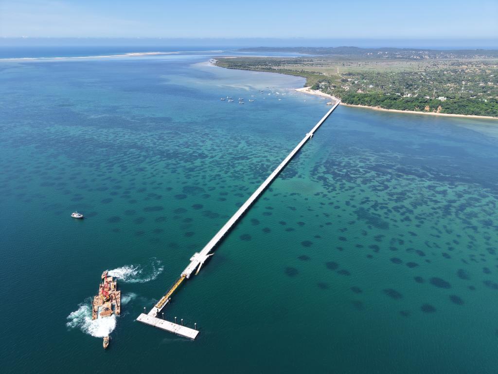 圖為2月26日拍攝的由中企承建的莫桑比克伊尼亞卡島海上棧橋通道碼頭。新華社發(fā)