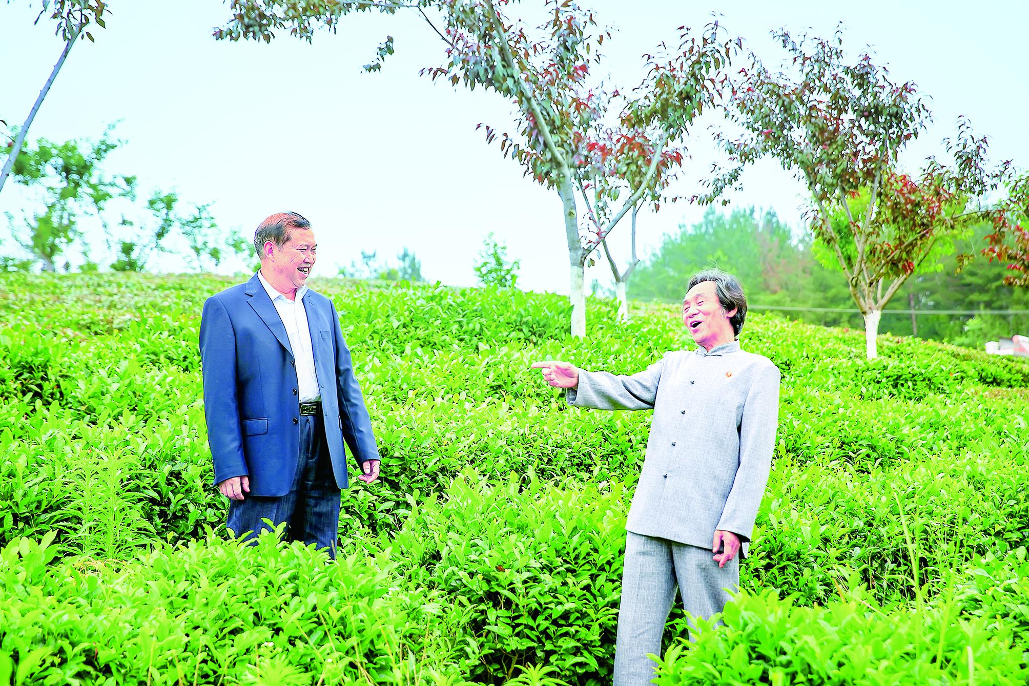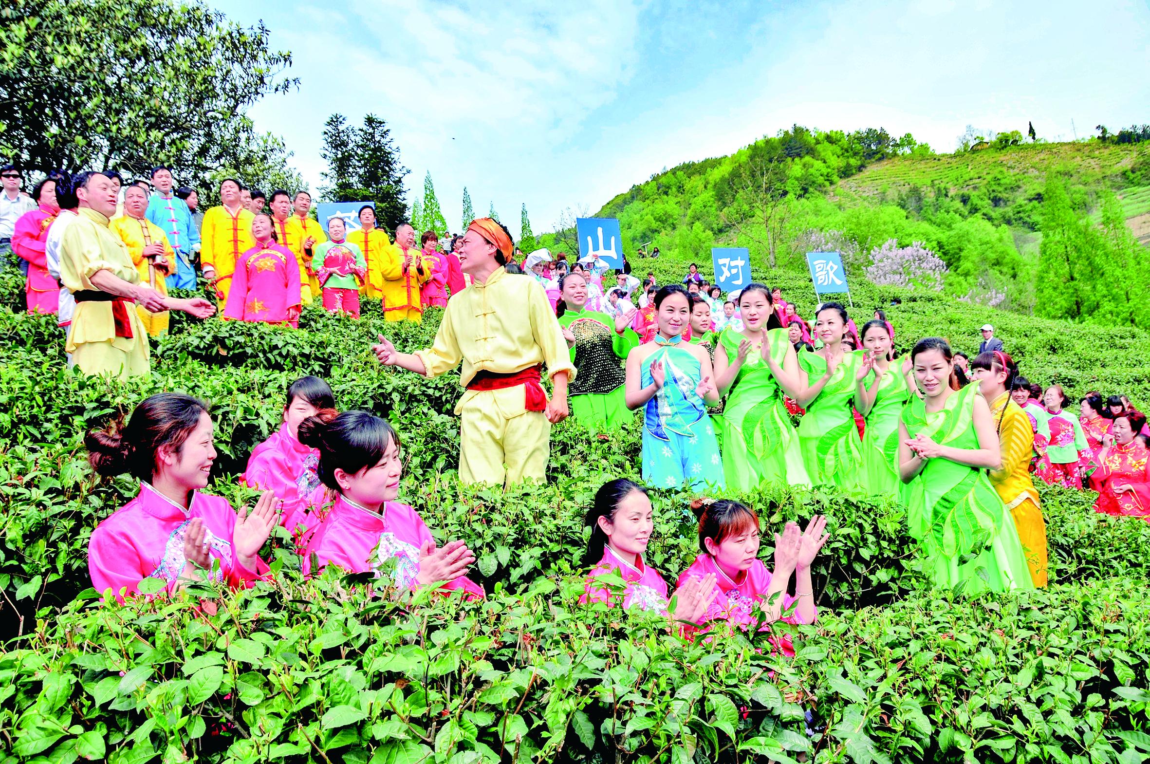 紫陽民歌歌手夏清華與陜北民歌歌手王向榮在紫陽茶山對歌交流 劉友平 攝