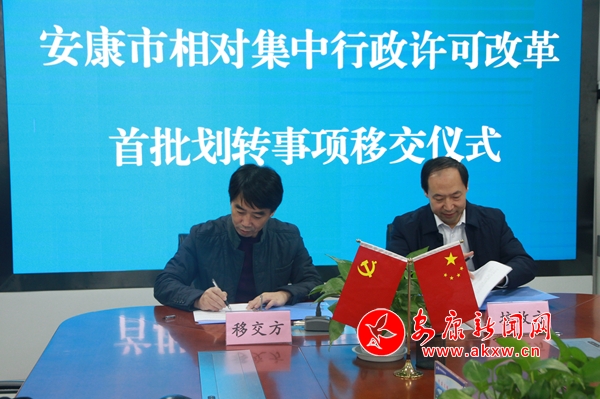 交接會(huì)上,市行政審批服務(wù)局宣讀了《市政府辦公室關(guān)于啟用安康市行政審批服務(wù)局行政審批專用章的通知》。市行政審批服務(wù)局相關(guān)領(lǐng)導(dǎo)分別與市場(chǎng)監(jiān)管、交通運(yùn)輸、衛(wèi)健、教育、司法等5部門負(fù)責(zé)人就94項(xiàng)行政許可事項(xiàng)簽訂劃轉(zhuǎn)移交協(xié)議,進(jìn)一步明確了移交內(nèi)容、移交程序、工作要求。