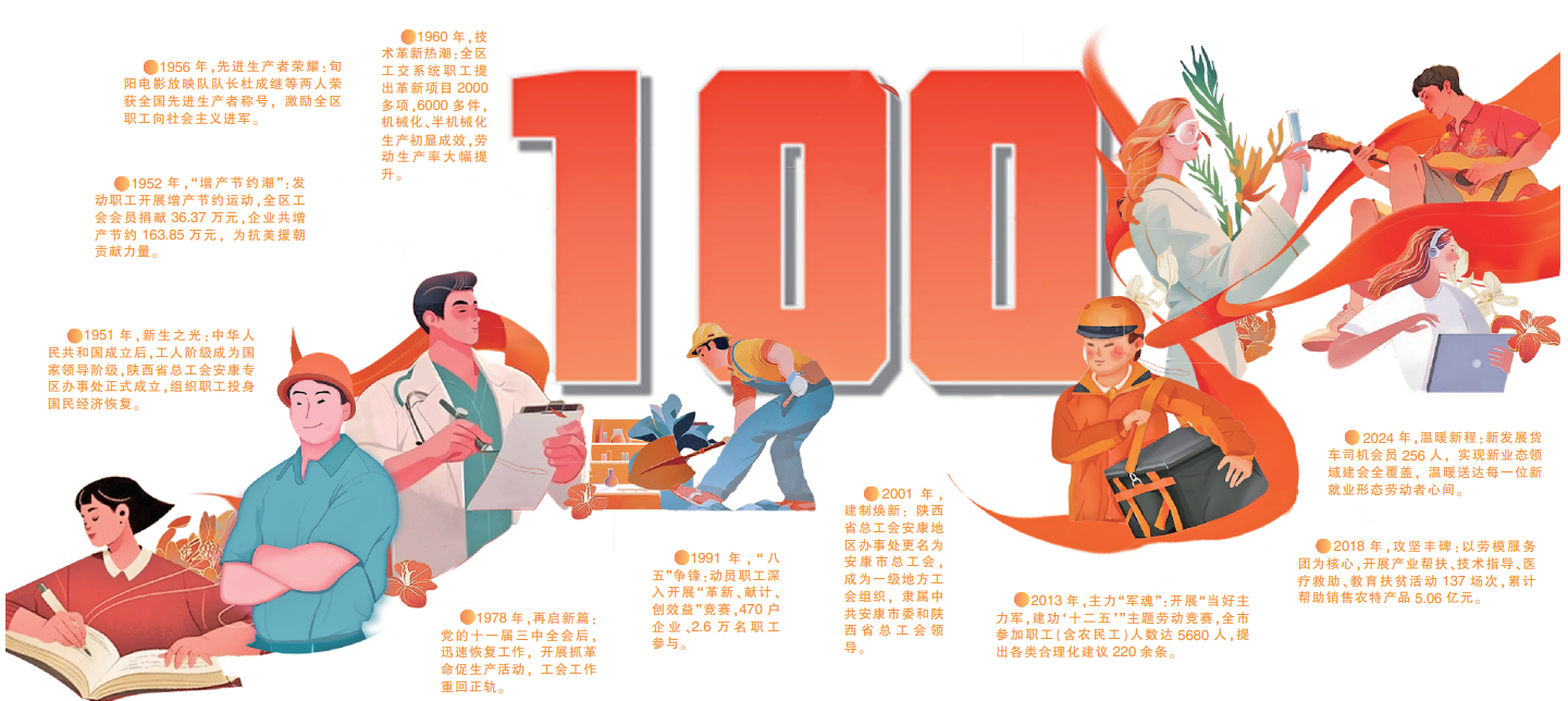2025年,是全國總工會成立100周年,作為工人階級和廣大勞動群眾的堅強后盾,全國總工會為我國的社會進步和經濟發(fā)展做出了不可磨滅的貢獻。安康工運事業(yè)從1925年漢水畔第一聲“勞工萬歲”的吶喊,到深度參與三線建設、脫貧攻堅、生態(tài)經濟等重大戰(zhàn)略,再到新時代百萬職工投身幸福安康建設的鏗鏘步履,始終與黨的事業(yè)血脈相連,與城市發(fā)展同向同行。