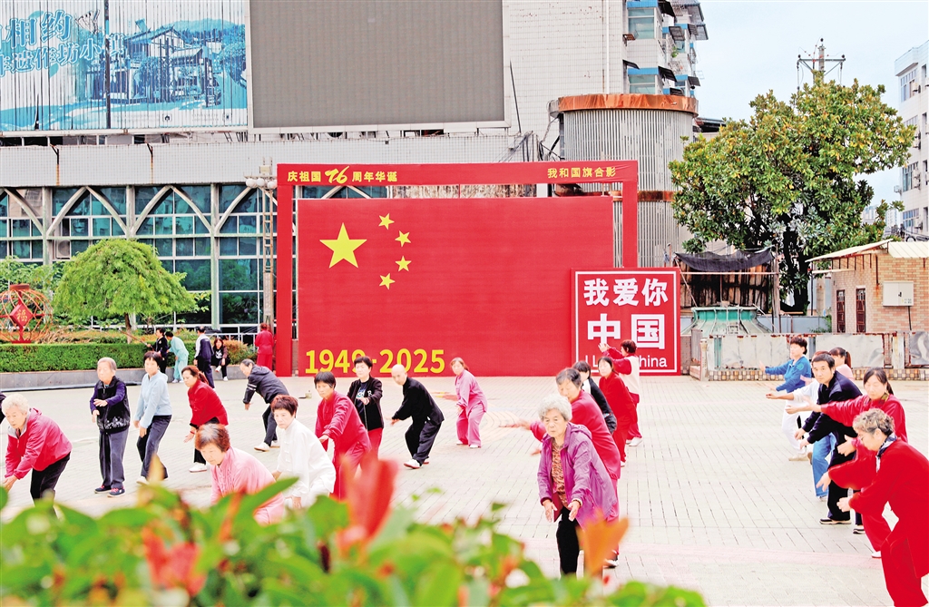 紫陽(yáng)城區(qū)的街頭巷尾,一面面鮮艷的五星紅旗迎風(fēng)招展,處處洋溢著祥和的節(jié)日氛圍。 葉明星 攝wxP安康新聞網(wǎng)