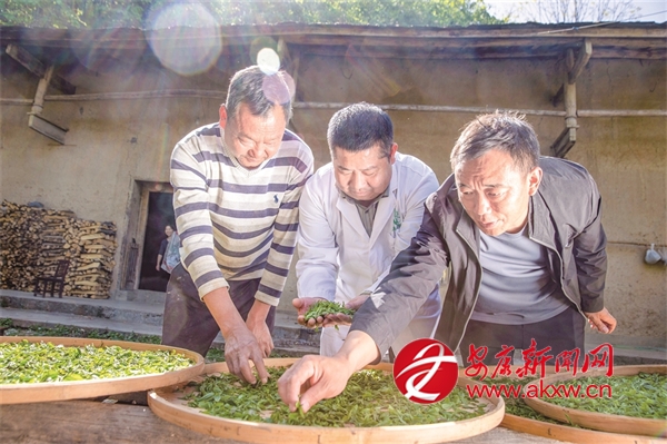 “十四五”期間,我市持續(xù)推進(jìn)茶產(chǎn)業(yè)發(fā)展,努力實(shí)現(xiàn)茶產(chǎn)業(yè)“四時(shí)有收”。圖為紫陽白茶非遺制作技藝代表性傳承人在高橋鎮(zhèn)裴壩村,向茶農(nóng)推廣紫陽白茶非遺制作技藝。 李勝璋 攝 u6f安康新聞網(wǎng)