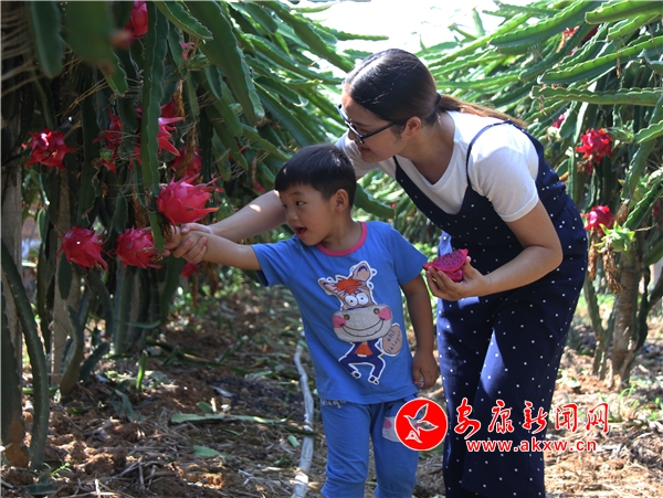 此時(shí)的王家臺(tái)村早已沒(méi)有了車(chē)水馬龍,而這里更有種“悠然見(jiàn)南山“的清新灑脫。微風(fēng)習(xí)習(xí),陽(yáng)光正好,王浩家的小兒子在田間跑來(lái)跑去,抱著火龍果吃的正香,看到此景讓人不禁感嘆道:王家臺(tái)的火紅豐收季,到了。
