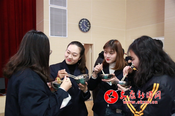 “冬至到、餃子香、團(tuán)情濃!”12月22日上午,中國鐵路西安局集團(tuán)有限公司安康機(jī)務(wù)段在運(yùn)動(dòng)吧組織家在異地的團(tuán)員青年開展“冬至有溫暖、團(tuán)情常相伴”主題團(tuán)日活動(dòng)。52名團(tuán)員青年匯聚在一起,搟面、拌餡、包餃子……忙得不亦樂乎。兩個(gè)小時(shí)后,一盤盤熱氣騰騰的餃子端上餐桌,吃著自己親手包的餃子,大家紛紛表示“這次活動(dòng),既暖胃又暖心,就和在家里一樣!”(通訊員 黃志偉 羅超 圖/文)