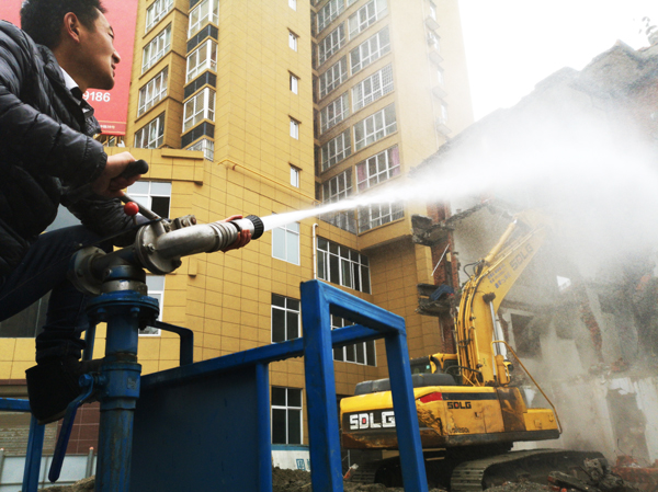 “濕法”拆建防揚(yáng)塵