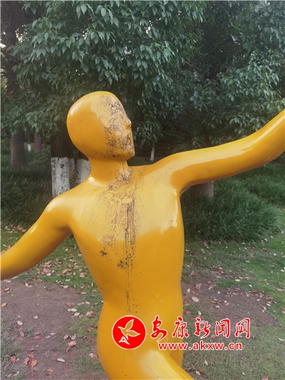 五一期間,安康高新區(qū)運動公園內(nèi),一處運動塑像遭人“抹黑”,污跡斑斑,有礙觀瞻。(記者 許安)