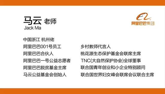 同時(shí),馬云的新名片曝光。其中,馬云名字后緊跟“老師”稱謂,眾多頭銜中并未出現(xiàn)“董事局主席”字眼。