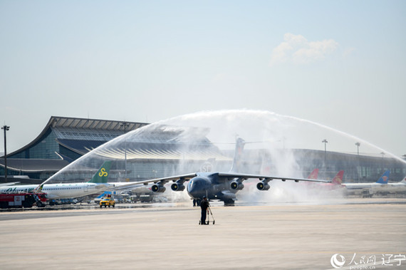 9月2日上午,一架中國人民解放軍運-20運輸機降落在沈陽桃仙國際機場。人民網(wǎng) 邱宇哲攝