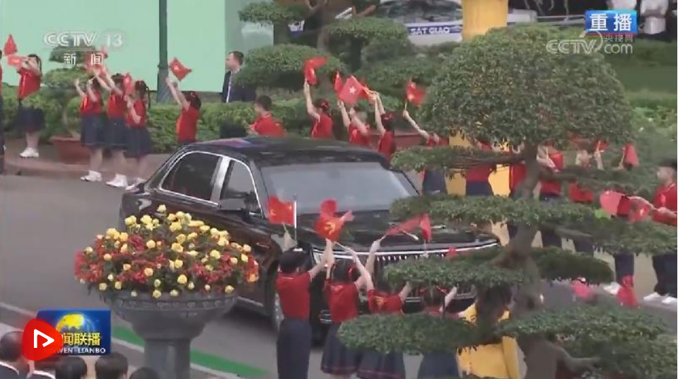 歡迎儀式后,習(xí)近平和蘇林一同步行前往越共中央駐地舉行會談。沿途數(shù)百名越南民眾揮舞兩黨兩國旗幟,對習(xí)近平表示最熱烈的歡迎。習(xí)近平向歡迎人群揮手致意。