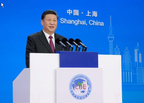 2018年11月5日,首屆中國國際進(jìn)口博覽會在上海開幕。習(xí)近平出席開幕式并發(fā)表題為《共建創(chuàng)新包容的開放型世界經(jīng)濟(jì)》的主旨演講。新華社記者 李學(xué)仁 攝