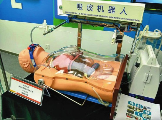 西安交大外科夢工廠研發(fā)制造的吸痰機(jī)器人。