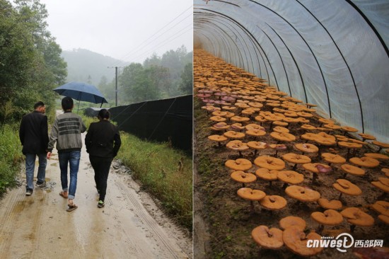 漢中洋縣磨子橋鎮(zhèn)二龍村,浙江麗水人周昌仁和妻子在大山溝里租了8畝地,投入30多萬元種靈芝,在浙江讀大四的兒子周偉建選擇到父母的靈芝大棚里實習(xí)。XD7安康新聞網(wǎng)